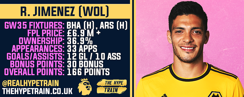 Jimenez has failed to score in his last 3 league appearances, but boasts penalty kicks being in his favour against a Brighton side that conceded 7 goals against Bournemouth and Cardiff in what we'll argue is the worst Double Gameweek performance by a headline club, ever.