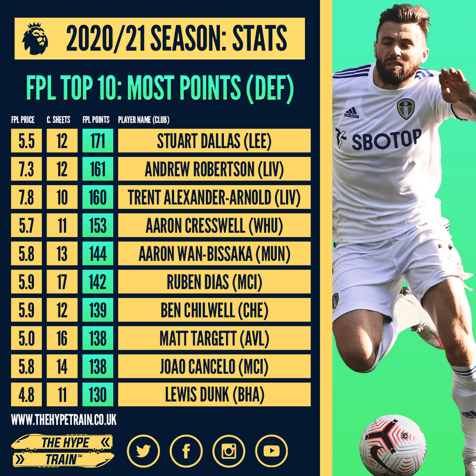 The 2020/21 Premier League season began on Saturday 12th September 2021 and later concluded on Sunday 23rd May 2021, with Man City lifting the Premier League crown on the final day after a 5-0 win over Everton at The Etihad. Long before the final day of the campaign Fulham, West Brom, and Sheffield United, did not survive the drop and were relegated to the Championship. Covid-19 had a massive impact on the league and the FPL game, as did the Super League proposal, fan protests, empty stadiums and more. Amongst the chaos of a tortured season, we catalogue some of the most important FPL statistics to The Hype Train archives as we have a series of info-graphics for your viewing pleasure. All aboard.